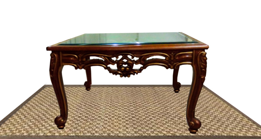Classical teakwood center table with fine carving, finished with duco paint with a 12mm glass top. (polish, duco colour & size as per client’s choice)